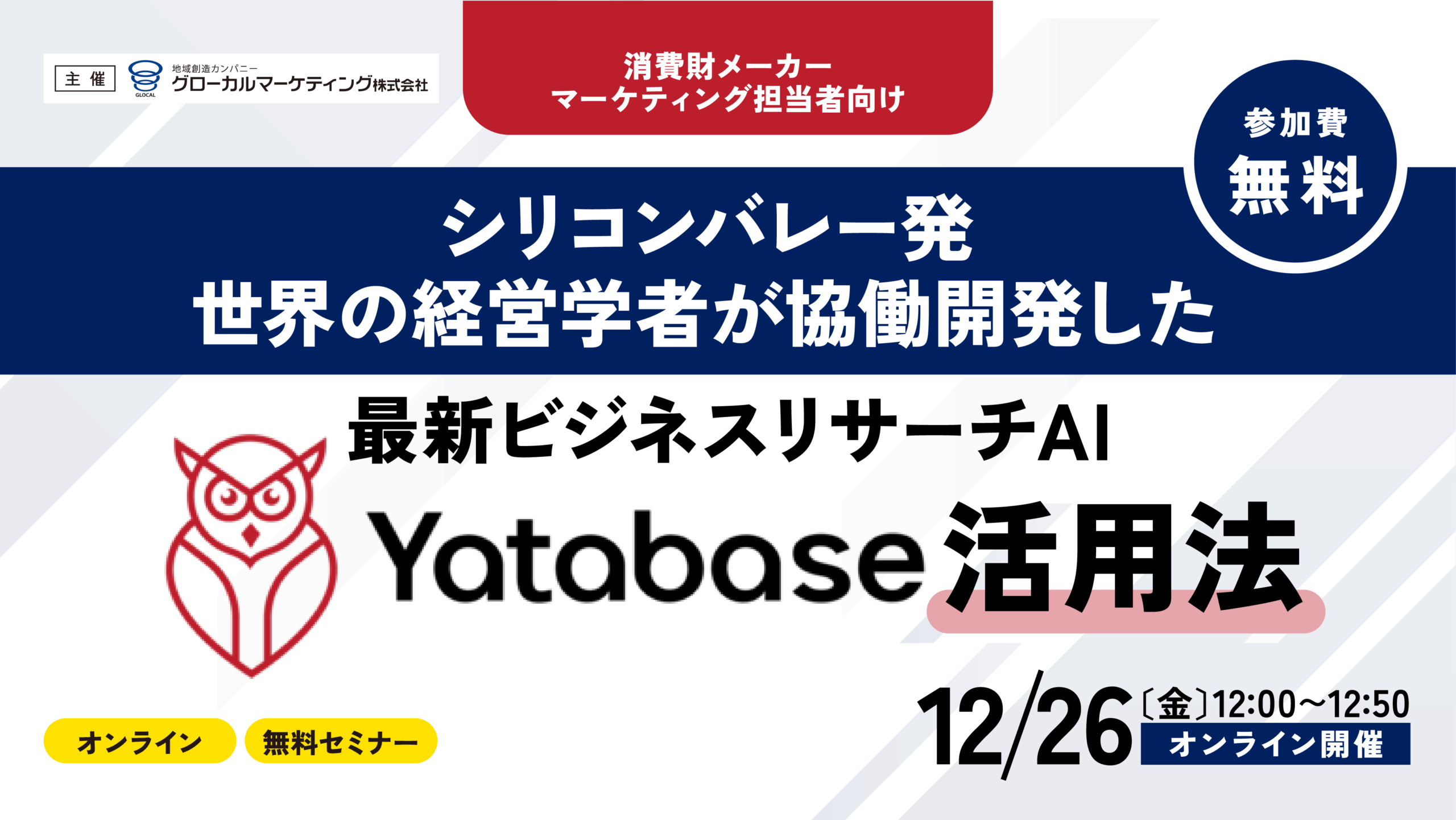 そのような問題への対策ツールとして生成AIを活用したスピーディーな仮説検証と意思決定をサポートするYatabaseをご紹介いたします。経営学者でありYatabaseのVice President(副社長)である伊藤 龍史 氏が開発の考え方や信頼性などをサービス画面を用いて解説いたします。