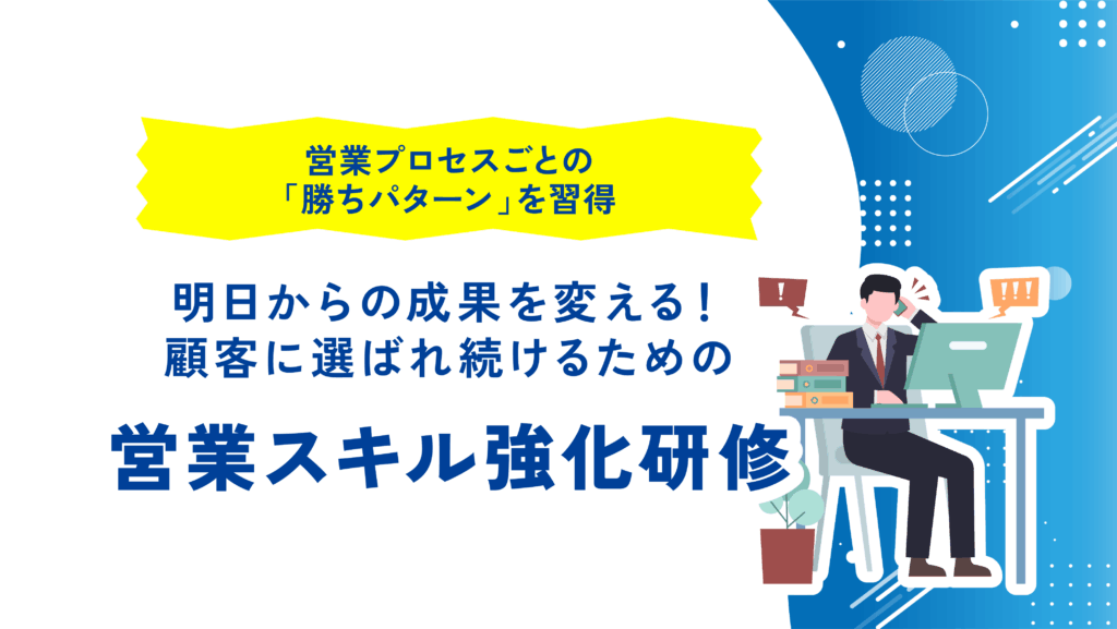 営業成果が個人の感覚や経験に依存していませんか?本研修では、営業プロセスを「アプローチ」から「クロージング」まで6つの段階に分解し、各段階で求められる具体的なスキルとテクニックを体系的に学びます。 貴社の営業チームが、再現性の高いスキルを武器に、安定的に成果を創出し続ける組織へと進化することを目指します。