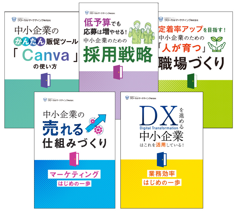 中小企業のDX化やマーケティング、採用戦略などの考え方のポイント、施策をジャンルごとにまとめた書籍を販売しています。